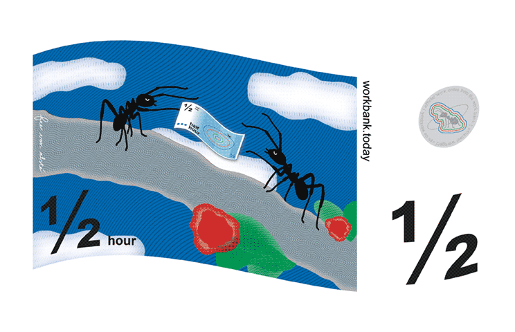 werkgeld is een ruilmiddel, zoals de euro, maar dan gebaseerd op tijd : Je hebt biljetten voor 30 minuten, 1 uur, 2 uur of zelfs 5 uur.