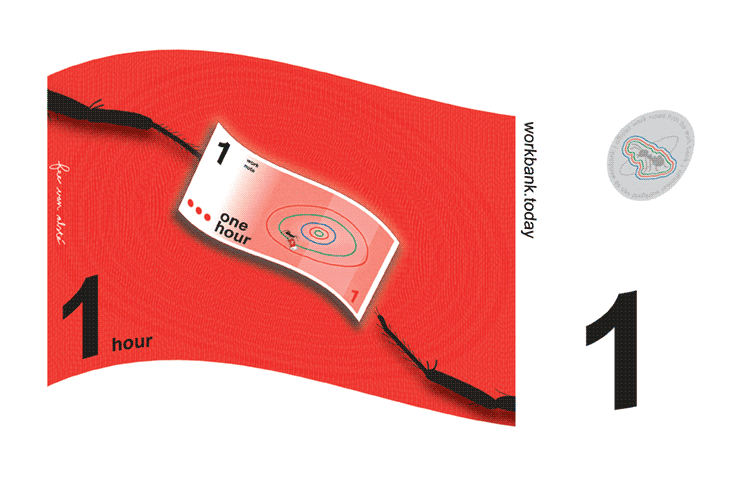 We beginnen met de basis. Op dit moment ontwerpen en produceren we de eerste papieren dummies: bankbiljetten waarop uren en minuten staan. Hiermee zoeken we partners en supporters: